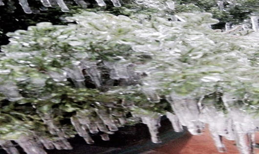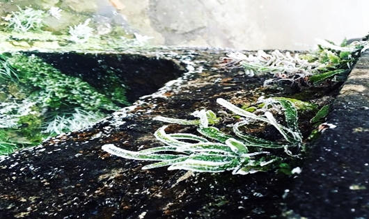 Đầu giờ chiều nay, tuyết kết thành băng ở Mẫu Sơn
