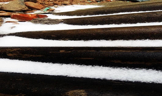 Tuyết phủ dầy hàng cm tại một đập thoát nước