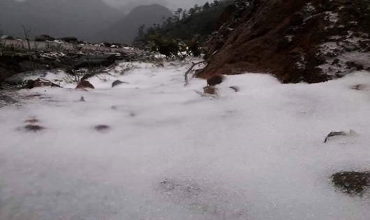 Mưa đá nhỏ kèm theo tuyết tại TP Lạng Sơn vào sáng nay