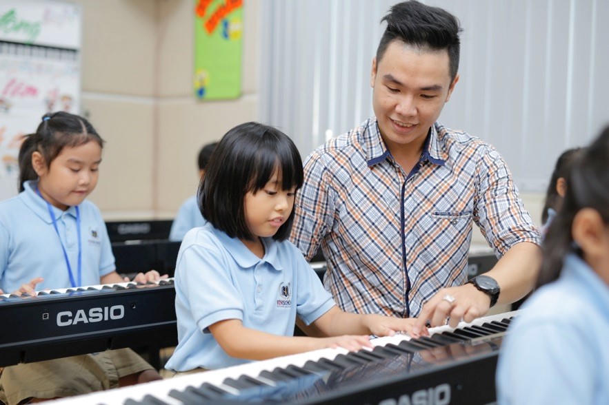 Phòng âm nhạc với đầy đủ các nhạc cụ hiện đại và truyền thống, giúp học sinh phát triển năng khiếu toàn diện. Nghệ thuật cũng là một trong năm cấu phần trong chương trình giáo dục toàn diện tại Vinschool. Ngoài các bộ môn âm nhạc, hợp xướng… học sinh cũng sẽ học các môn Mỹ thuật, Nhảy… trong chương trình chính khoá.