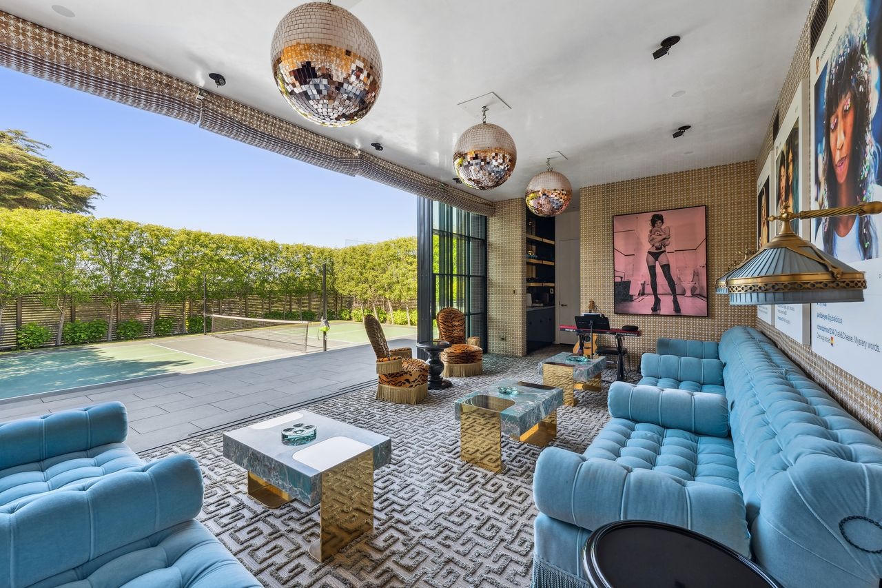 Ngôi nhà có tới 8 phòng ngủ, 2 phòng thay đồ cỡ lớn. Trong nhà sở hữu đầy đủ các tiện nghi như: phòng karaoke hiện đại, sân tennis và sân bóng ném.