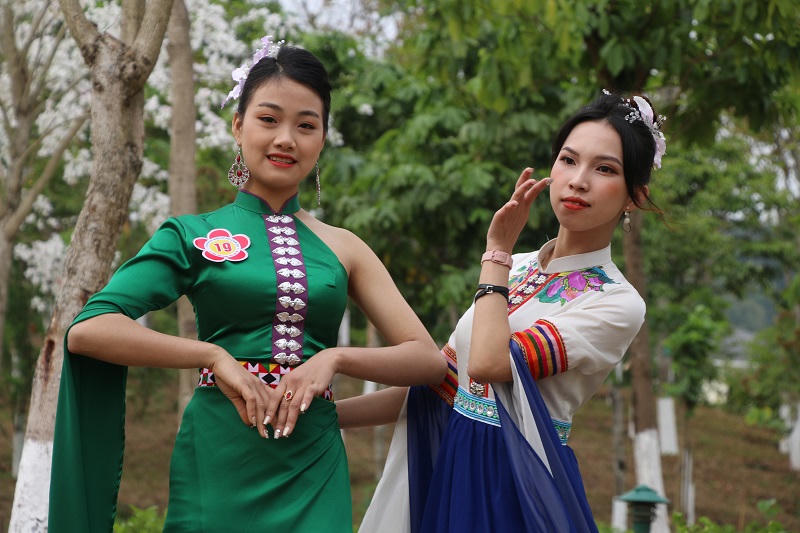 Phần trình diễn thực cảnh của các thí sinh dự thi người đẹp hoa ban trình diễn trang phục dân tộc Thái nguyên bản và cách tân đã để lại nhiều cảm xúc lắng đọng trong lòng du khách và người dân.