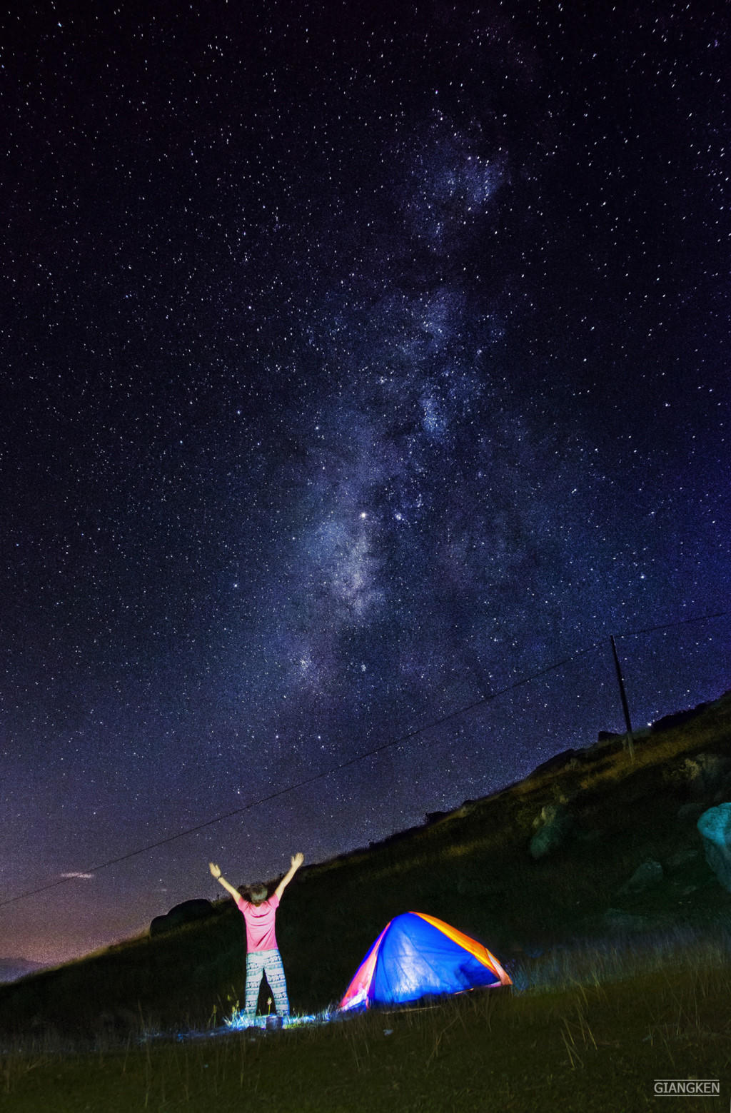 Trời tối dần, khi bếp lửa được đốt lên cũng là lúc một cảnh tượng tuyệt vời hiện ra trước mắt chúng tôi. Dải ngân hà với hàng tỷ ngôi sao lấp lánh vắt ngang qua bầu trời đêm. Bạn chỉ việc gối đầu lên thảm cỏ và vươn tay là tưởng như chạm tới được.