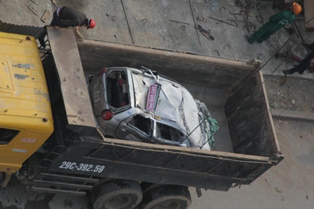 (PLO) -Đúng 2h30’ chiều nay (28/12), chiếc xe taxi gặp nạn trong vụ sập giàn giáo tại tuyến đường sắt Cát Linh - Hà Đông đã được rời khỏi hiện trường...