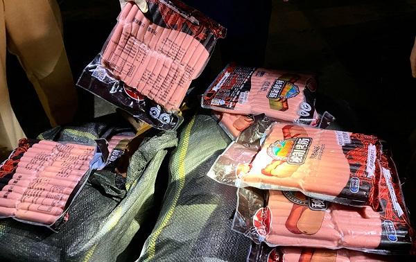 Xúc xích và hàng hóa không xuất trình được giấy tờ chứng minh nguồn gốc. |