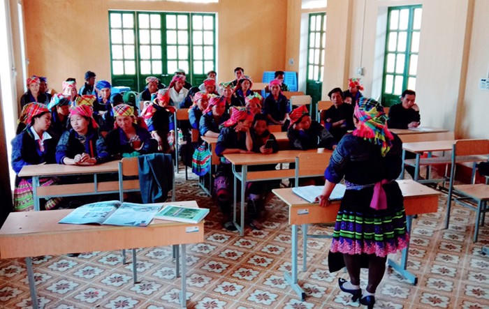 Với đặc thù dân số chủ yếu là người DTTS, nên các hoạt động truyền thông về mua bán người được thực hiện bằng tiếng phổ thông và tiếng của chính đồng bào các dân tộc sinh sống trên địa bàn. “Ở đây cán bộ xã đa số đều biết tiếng của đồng bào, là người đồng bào nên đều tuyên truyền bằng tiếng của đồng bào. Ví dụ ở xã Chiến Phố huyện Hoàng Su Phì có dân tộc Mông, Nùng là chính thì đều có cán bộ người dân tộc đó: cán bộ Hội Phụ nữ, Công an, Tư pháp đều là người dân tộc nên khi tuyên truyền ở địa bàn thôn/bản dân tộc nào thì cán bộ biết tiếng dân tộc đó sẽ đi trao đổi. Trong trường hợp không có cán bộ nói được tiếng của dân tộc đó, thì khi đi tuyên truyền chỗ nào không biết tiếng của đồng bào lại nhờ các chị Chi hội trưởng ở thôn/bản đó phiên dịch sang tiếng của đồng bào cho” - một cán bộ Hội Phụ nữ xã Chiến Phố cho biết.