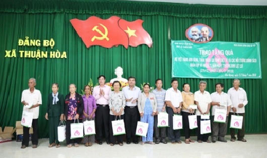 | Đại diện lãnh đạo NHCSXH tặng trao tặng quà cho các thương, bệnh binh, gia đình chính sách trên địa bàn xã Thuận Hòa, huyện Cầu Ngang, tỉnh Trà Vinh |