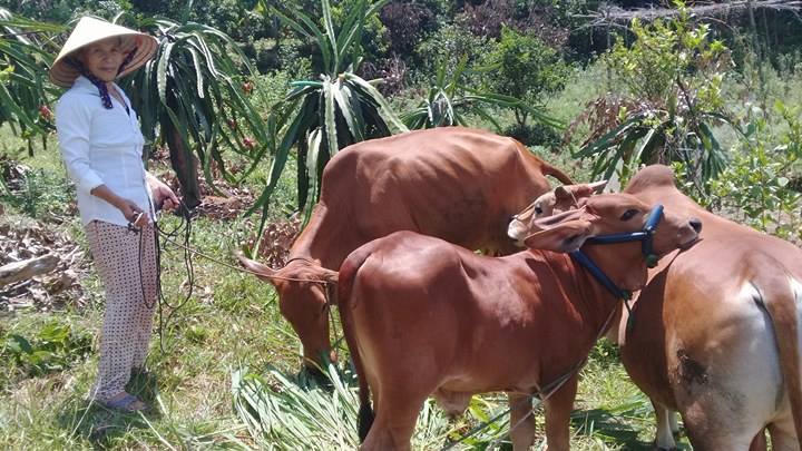Chị Hoa tâm sự: Chồng chị mất sớm, nhà có 4 mẹ con, trước đây hoàn cảnh rất khó khăn, khi thấy mọi người đầu tư chăn nuôi bò mang lại hiệu quả cao, gia đình tôi cũng muốn, nhưng không có vốn nên đành chịu. Đầu năm 2016, được Ngân hàng CSXH cho vay 45 triệu đồng chị Hoa dùng số tiền đó mua 2 con bò cái về nuôi, xây thêm chuồng trại, trồng cỏ…Sau gần 2 năm đầu tư chăm sóc, 2 bò mẹ đã đẻ được 1 bê con và 1 con đang chửa.