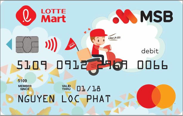 Thẻ LOTTE Mart – MSB là sự tích hợp giữa Thẻ thanh toán quốc tế của MSB và Thẻ thành viên LOTTE Mart, do vậy sẽ mang lại lợi ích kép cho khách hàng khi giao dịch. Chỉ cần mở thẻ một lần, khách hàng vừa có thể mua sắm tích điểm tại LOTTE Mart vừa có thêm một Thẻ quốc tế có thể thanh toán tiện lợi trên 35 triệu điểm chấp nhận thẻ, hạn mức thẻ lên đến 5 lần thu nhập với 45 ngày miễn lãi, rút tiền mặt dễ dàng tại hàng triệu máy ATM.