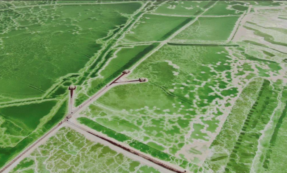 Các đụn muối trên bờ biển Bột Hải ở phía đông bắc của Trung Quốc khi nhìn từ vệ tinh. Ảnh: Nasa/Wikimedia Commons. |