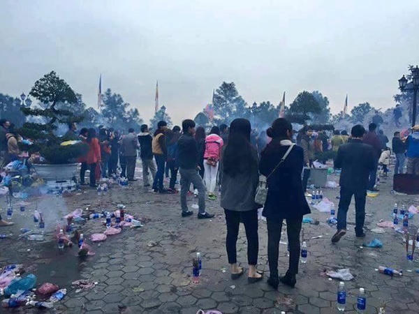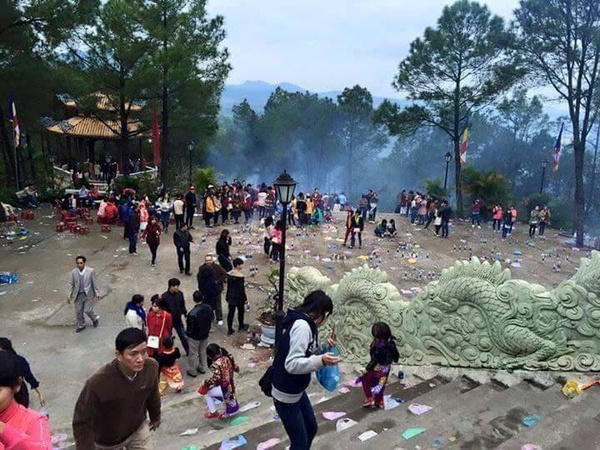 Những ngày đầu năm mới, rất đông bạn trẻ đổ về, vừa khấn Phật cầu may, vừa vãn cảnh. Thế nhưng, trái với cảnh tự nhiên hữu tình, khách du xuân ăn uống xong hồn nhiên xả rác, cắm hương vào các vỏ chai nước, thậm chí đốt hương ngay trong chậu cây cảnh, làm tán lá xanh trở nên héo úa...