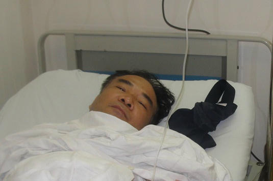 Trung tá Thanh tại BV Việt Đức. |