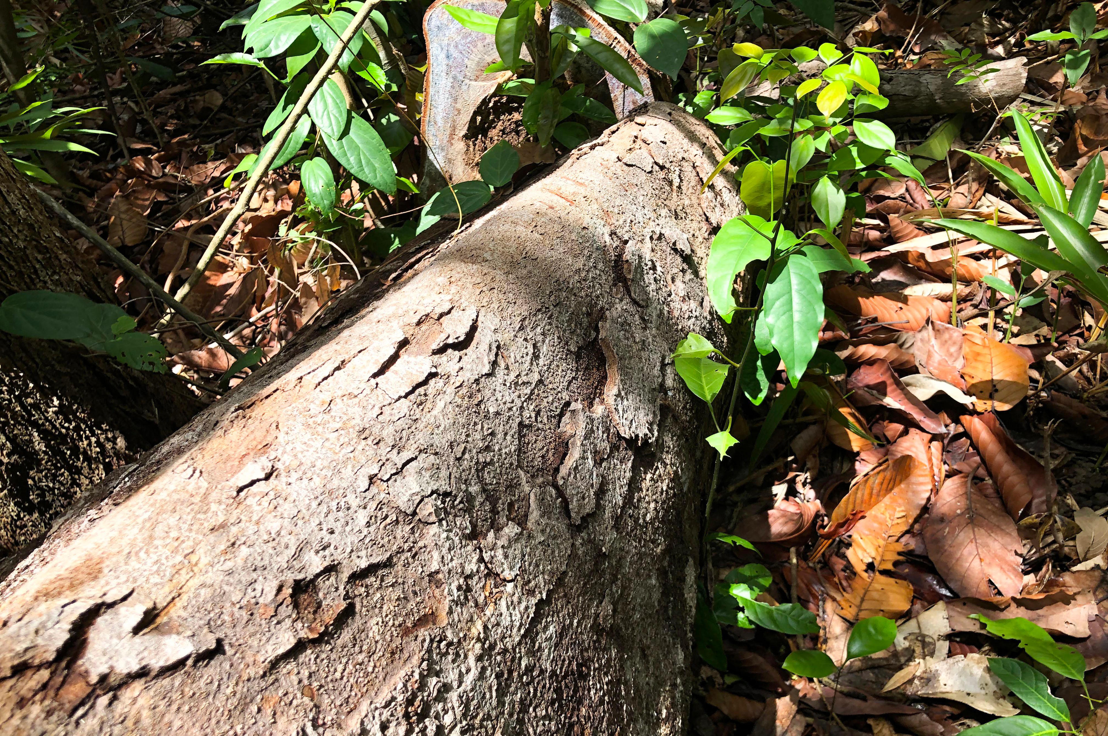 Thân cây thì được chia thành nhiều đoạn nằm ngổn ngang trong rừng. |