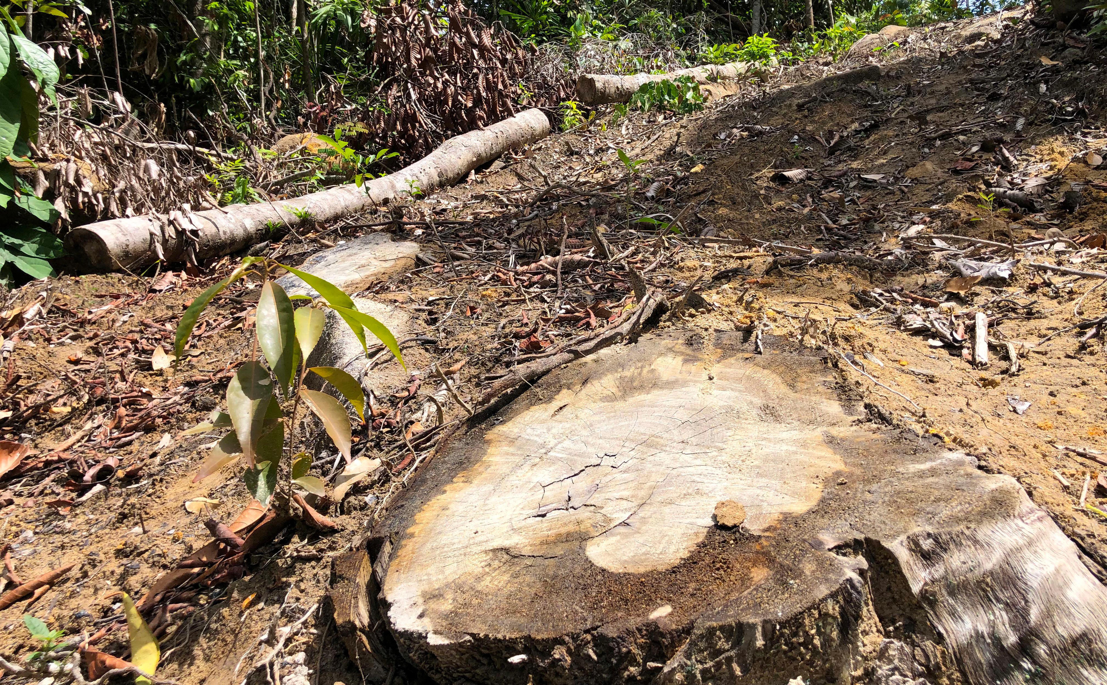 Vết cưa còn mới, nhựa cây vẫn còn chảy. |