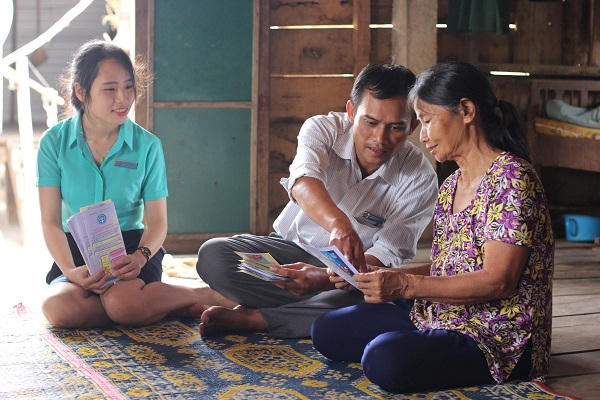 Cán bộ ngành BHXH tuyên truyền chính sách BHXH, BHYT đến với người dân. |