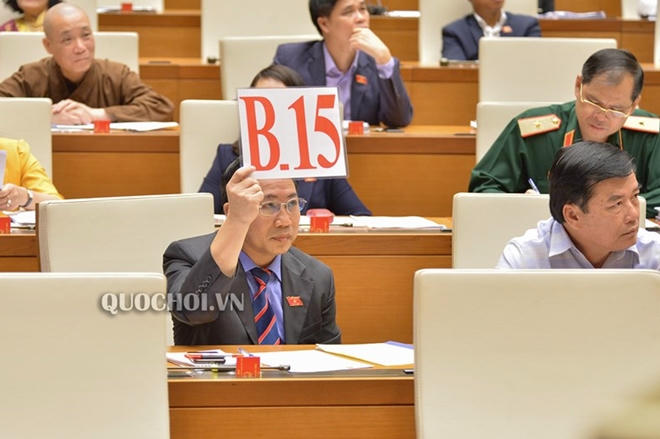 | ĐBQH Lưu Bình Nhưỡng tiếp tục giơ biển tranh luận lại nhưng không được Chủ tịch Quốc hội đồng ý |