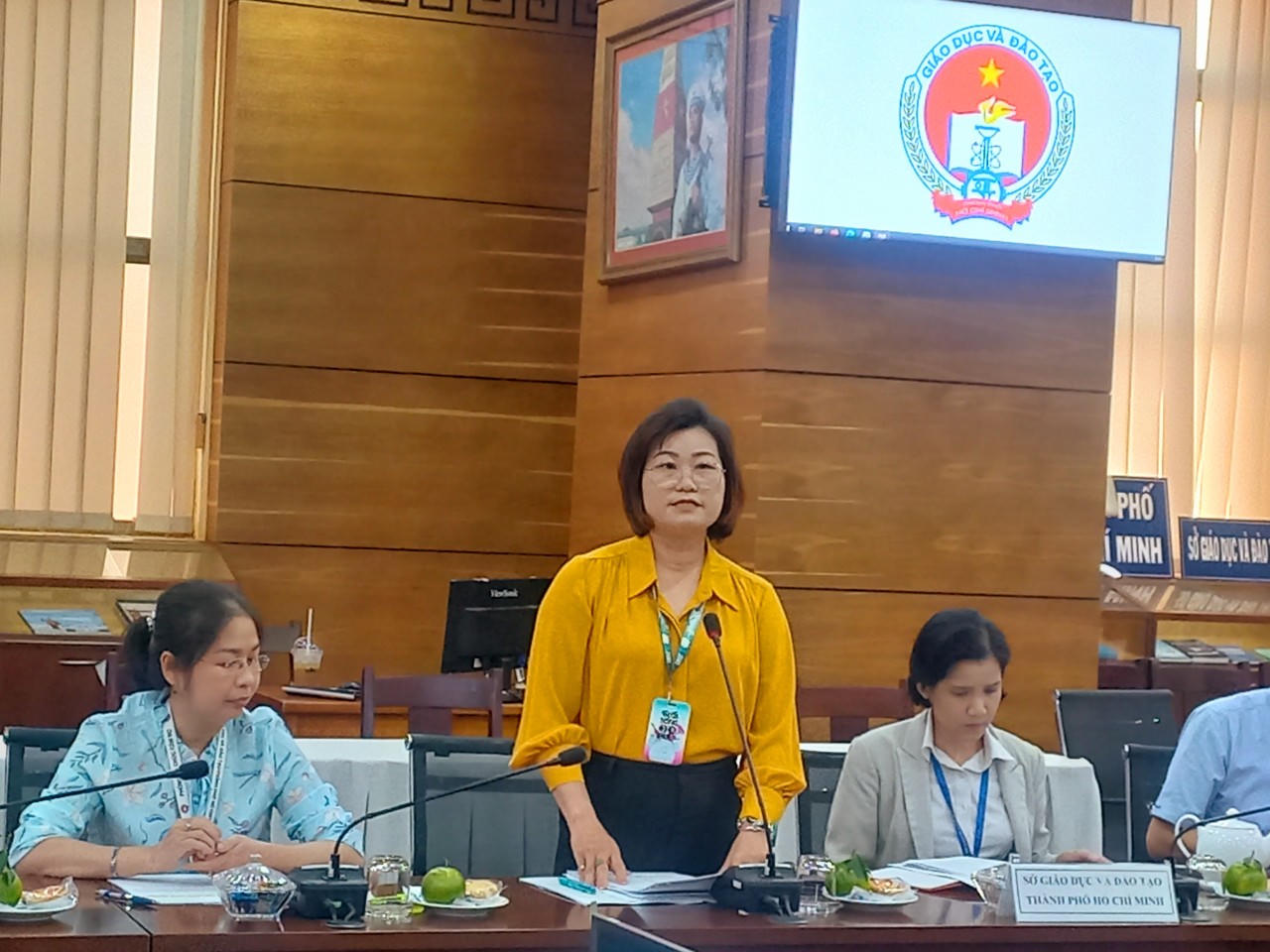 Bà Nguyễn Minh Bạch Lan, Phó Chánh văn phòng Sở GDĐT TP.HCM báo cáo kết quả thực hiện |