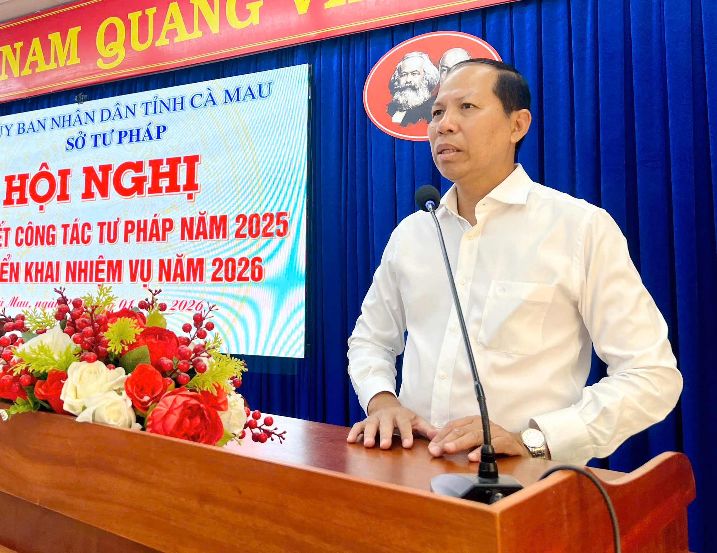 Hội nghị tổng kết 5 năm thực hiện phong trào thi đua yêu nước giai đoạn 2021–2025, đồng thời xác định phương hướng, nhiệm vụ trọng tâm của ngành Tư pháp Cà Mau trong năm 2026 và giai đoạn 2026–2030, trong bối cảnh tỉnh tiếp tục đẩy mạnh cải cách thể chế, sắp xếp tổ chức bộ máy và triển khai mô hình chính quyền địa phương hai cấp.