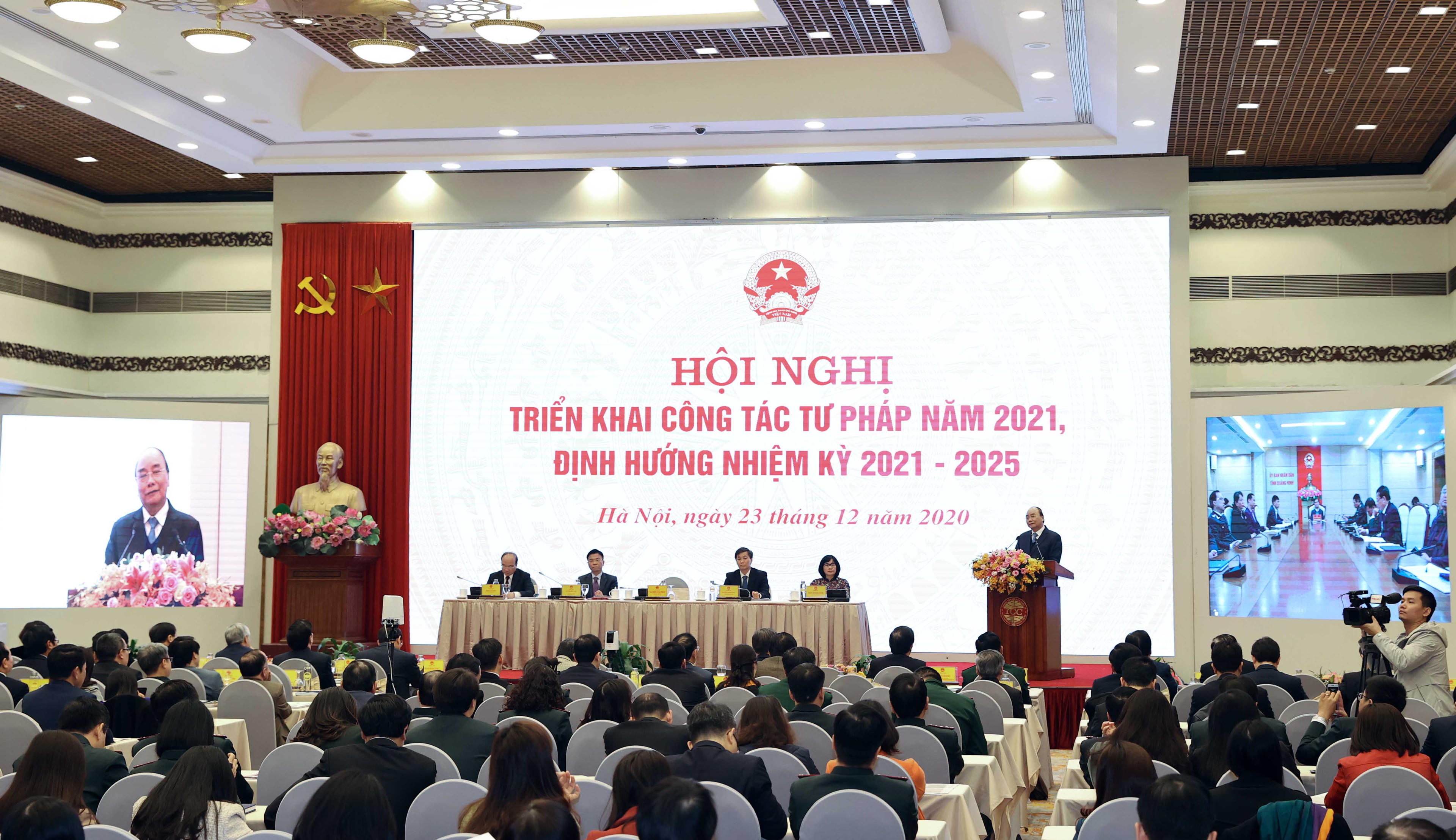 Phát biểu chỉ đạo Hội nghị, Thủ tướng Chính phủ Nguyễn Xuân Phúc khẳng định: thể chế pháp luật và thực thi pháp luật là nền tảng quan trọng để xây dựng đất nước, phải giữ được tính kỷ cương, dân chủ, minh bạch thì đất nước mới phát triển. Trong bất kỳ điều kiện nào, Chính phủ ta luôn nhận thức rõ vai trò quan trọng của ngành Tư pháp.