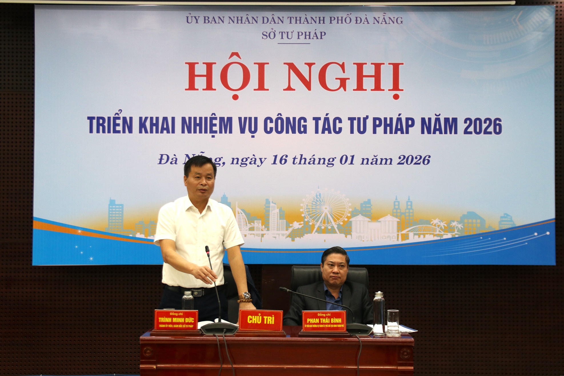 Ngày 16/1, Sở Tư pháp TP Đà Nẵng tổ chức Hội nghị triển khai nhiệm vụ công tác tư pháp năm 2026. Phó Chủ tịch UBND TP Đà Nẵng Phan Thái Bình; Giám đốc sở Tư pháp Trình Minh Đức dự và đồng chủ trì hội nghị.