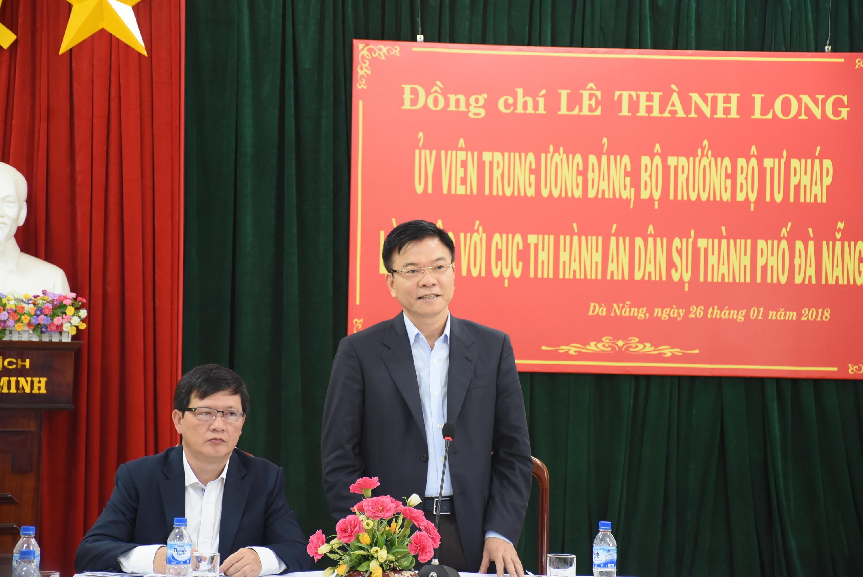 Trước đó, sáng 26/1, Bộ trưởng Bộ Tư pháp Lê Thành Long dẫn đầu Đoàn công tác Bộ Tư pháp đã đến thăm và làm việc với Cục Thi hành án Dân sự TP. Đà Nẵng (THADS).