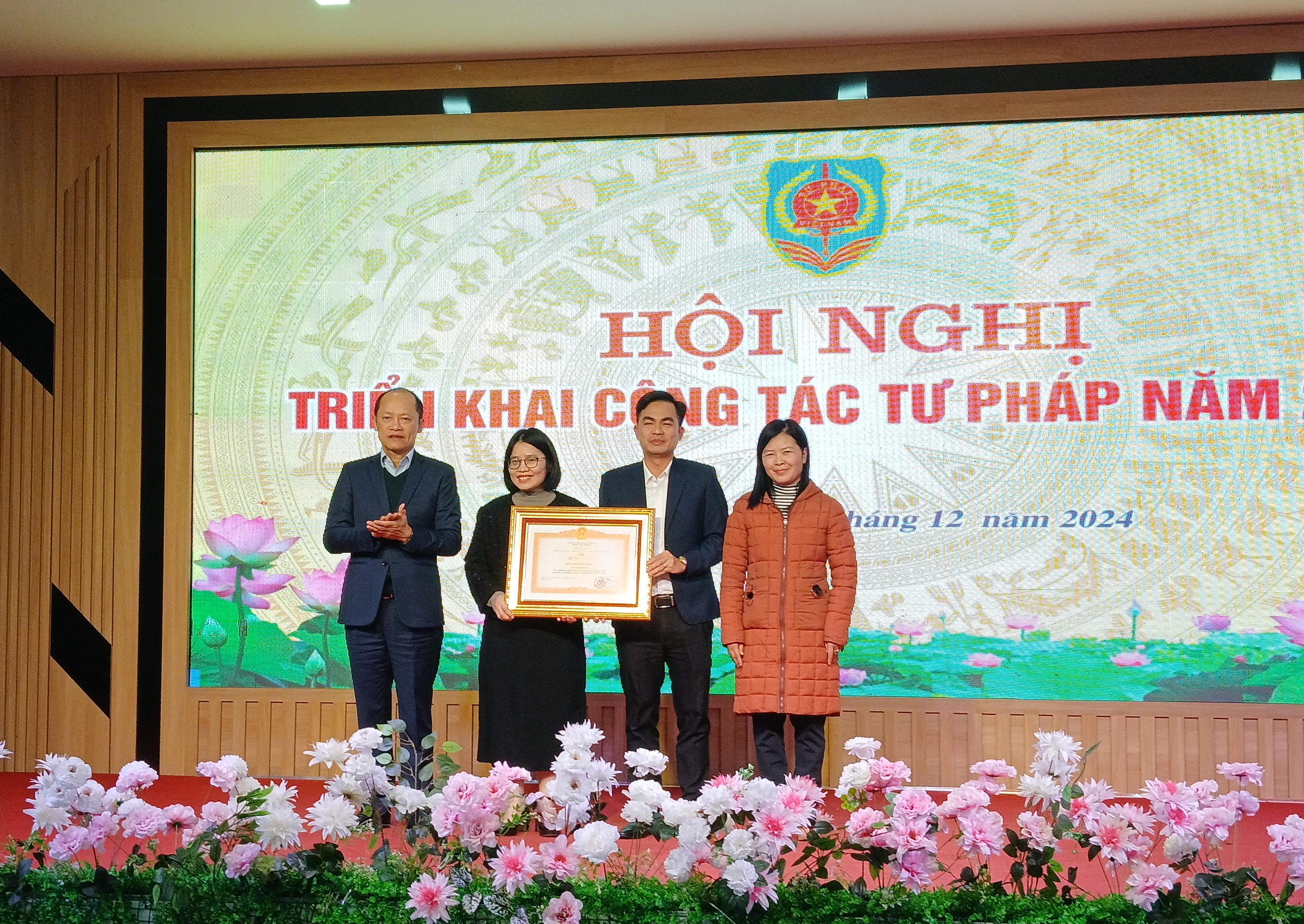 Tập thể cá nhân nhận Giấy khen của Giám đốc Sở Tư pháp Hà Tĩnh. Ảnh: PV |