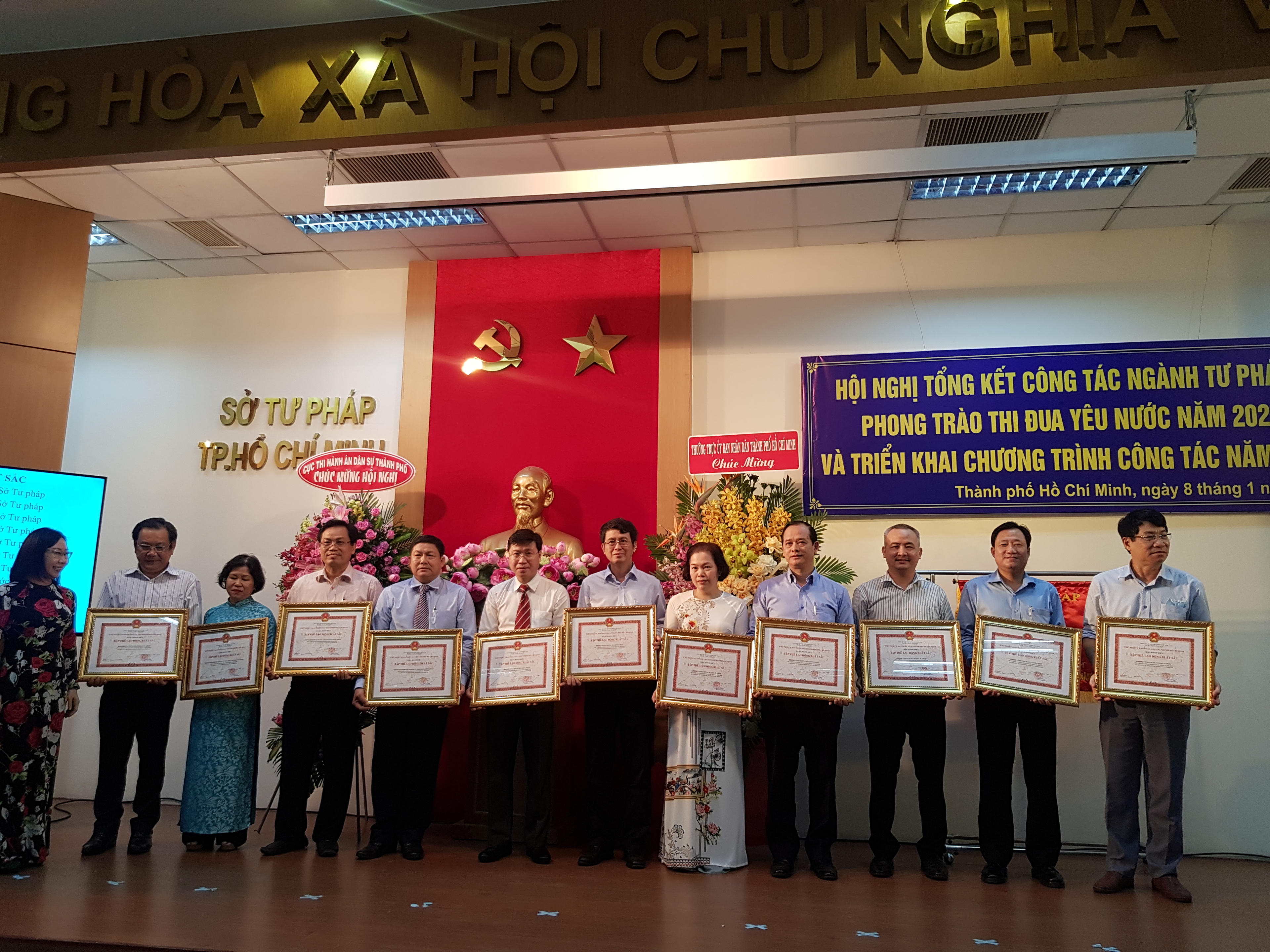 Với những thành tích đạt được, trong năm 2020, Sở Tư pháp TPHCM được vinh dự xếp hạng “Xuất sắc” trong khối các Sở Tư pháp các tỉnh, thành phố trực thuộc Trung ương (hạng 2 Toàn quốc và hạng nhất Khu vực thi đua miền Đông Nam Bộ) và được tăng danh hiệu “Cờ thi đua Ngành Tư pháp”.