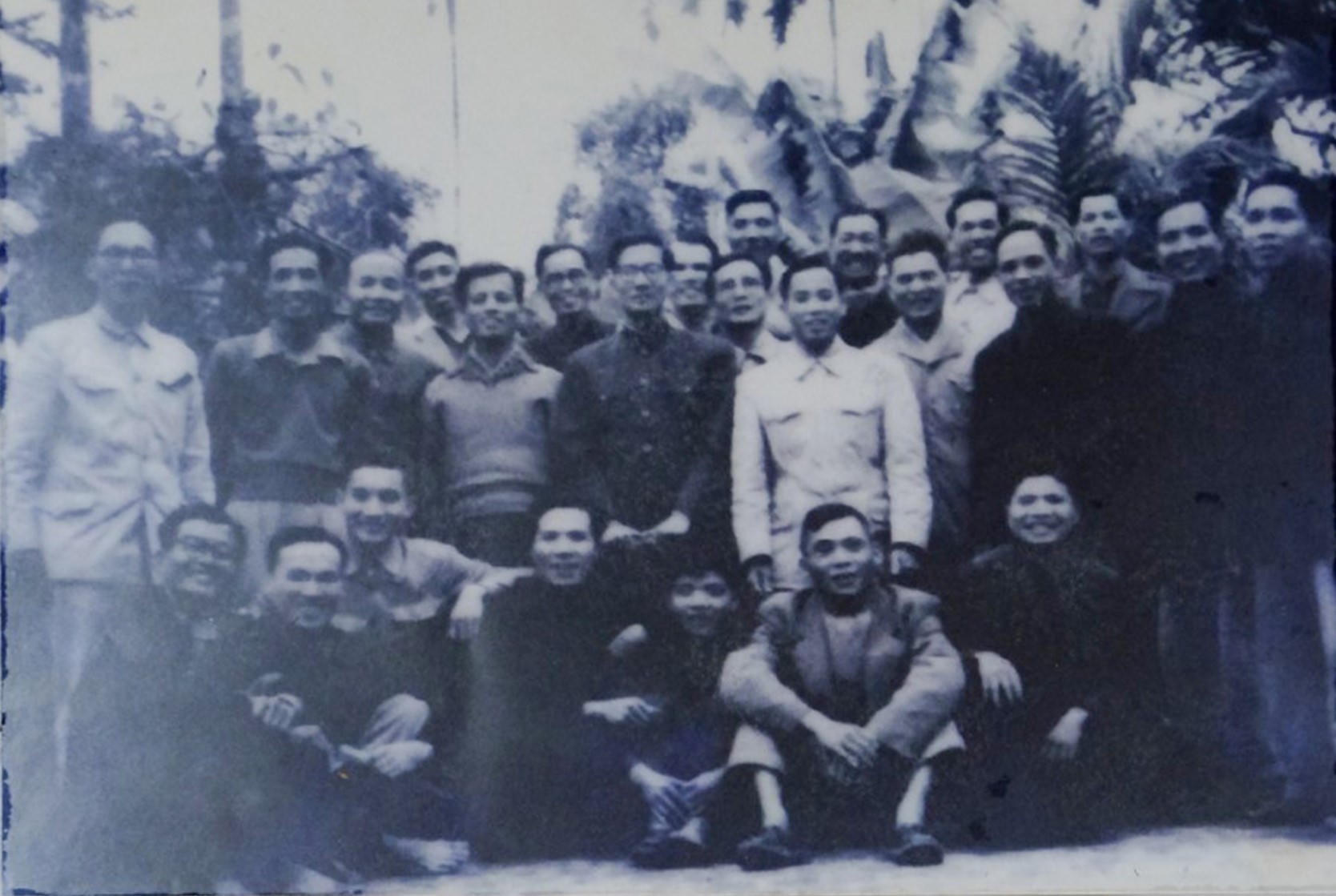 Tập thể cán bộ Bộ Tư pháp tại Chiến khu Việt Bắc. Đồng chí Vũ Đình Hòe đứng giữa đeo kính, Thứ trưởng Trần Công Tường đứng thứ 2 từ phải qua. (Ảnh tư liệu - Phòng truyền thống Bộ Tư pháp) |