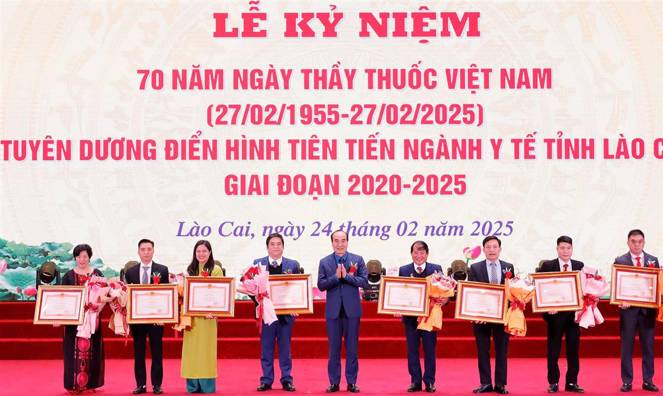 (PLVN) - Ngày 24/02/2025, UBND tỉnh Lào Cai tổ chức lễ kỉ niệm 70 năm Ngày thầy thuốc Việt Nam 27/2/1955 – 27/02/2025) và biểu dương điển hình tiên tiến ngành Y tế tỉnh Lào Cai giai đoạn 2020 – 2025.