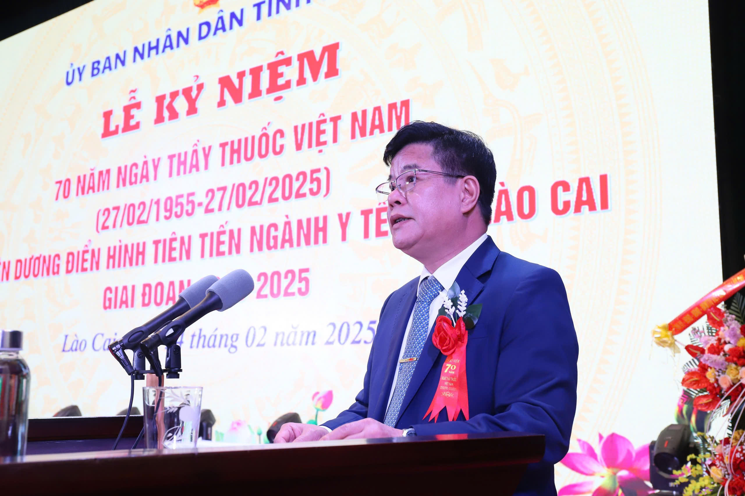 Phát biểu tại lễ kỷ niệm, ông Trịnh Xuân Trường - Bí thư Tỉnh ủy, Chủ tịch UBND tỉnh Lào Cai ghi nhận, biểu dương những thành tích ngành y tế đạt được, đặc biệt đánh giá cao công lao, vai trò, sự nỗ lực, hy sinh, cống hiến của các thầy thuốc đã góp phần quan trọng sự phát triển kinh tế - xã hội của tỉnh. Đồng thời mong muốn đội ngũ cán bộ ngành Y tế Lào Cai tiếp tục cố gắng hơn nữa, góp sức vào sự nghiệp xây dựng và bảo vệ Tổ quốc, xứng đáng với sự tôn vinh của Đảng, Nhà nước và nhân dân.