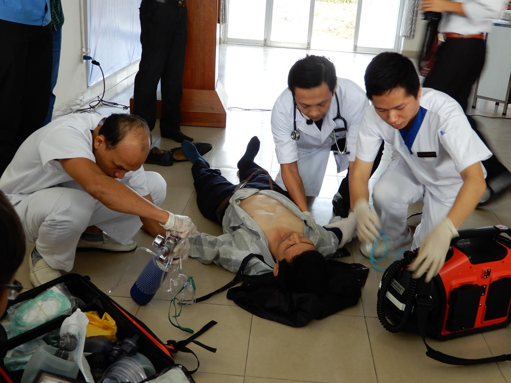 Ngay lập tức chuông báo động vang lên. Tổ y tế thường trực tại khách sạn lập tức có mặt, đánh giá nhanh hiện trường, thông báo ngay đường dây nóng của Ban chỉ đạo y tế APEC và huy động các Tổ y tế thường trực APEC lân cận đến hỗ trợ triển khai phương án cấp cứu hàng loạt cho các nạn nhân.