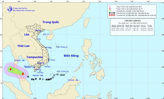 Trung tâm Dự báo khí tượng Thủy văn Quốc gia dự báo, bão di chuyển theo hướng Tây Tây Bắc, mỗi giờ đi được 15-20km. Đến 10h ngày 5/1, vị trí tâm bão trên vùng biển phía Tây của tỉnh Phuket (Thái Lan). Sức gió mạnh nhất vùng gần tâm bão mạnh cấp 8-9 (60-90km/giờ), giật cấp 11. Bán kính gió mạnh cấp 6, giật cấp 8 khoảng 120km tính từ tâm bão.