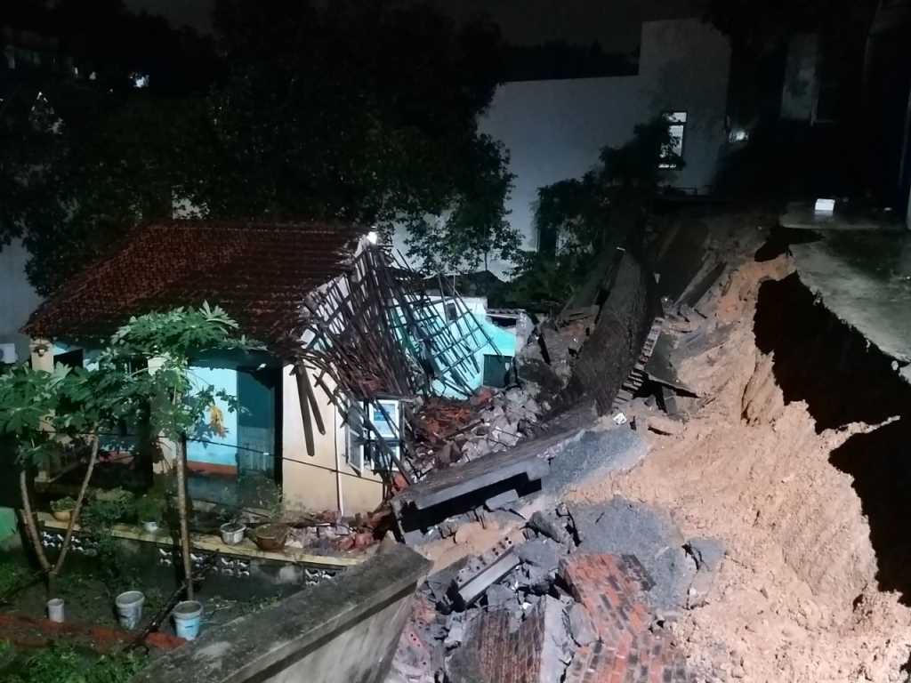 Mưa lớn làm đổ kè, sập một nhà tại khu 1B, phường Hồng Hải, TP Hạ Long. |
