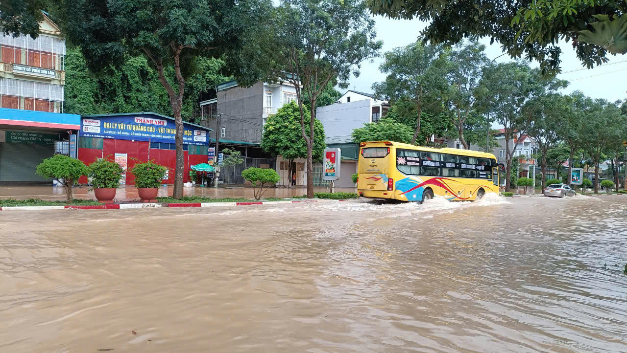 Tuyến đường Lê Duẩn qua phường Chiềng Sinh, TP Sơn La cũng bị ngập sâu trong nước. |