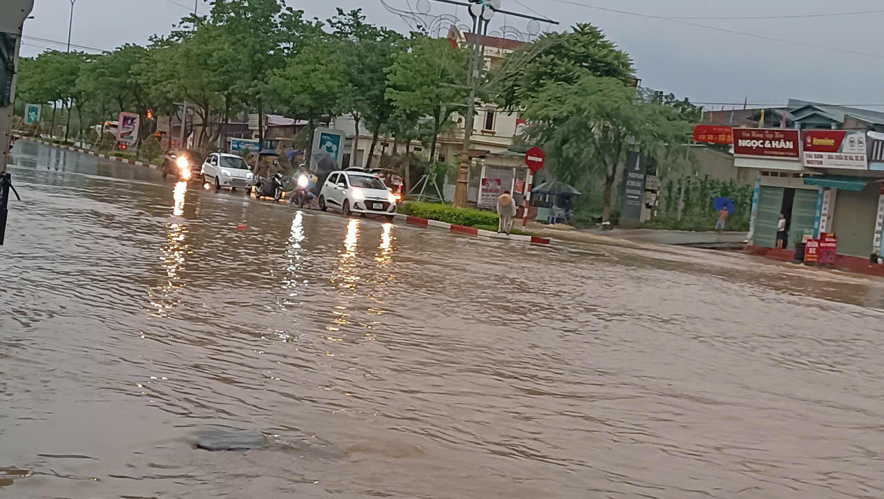Đường Trường Chinh, phường Quyết Thắng, TP Sơn La ngập sâu. (Ảnh: CTV). |