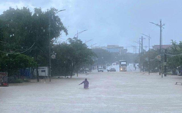 Ngập sâu tuyến Quốc lộ 1 qua thị xã Kỳ Anh do mưa lớn
