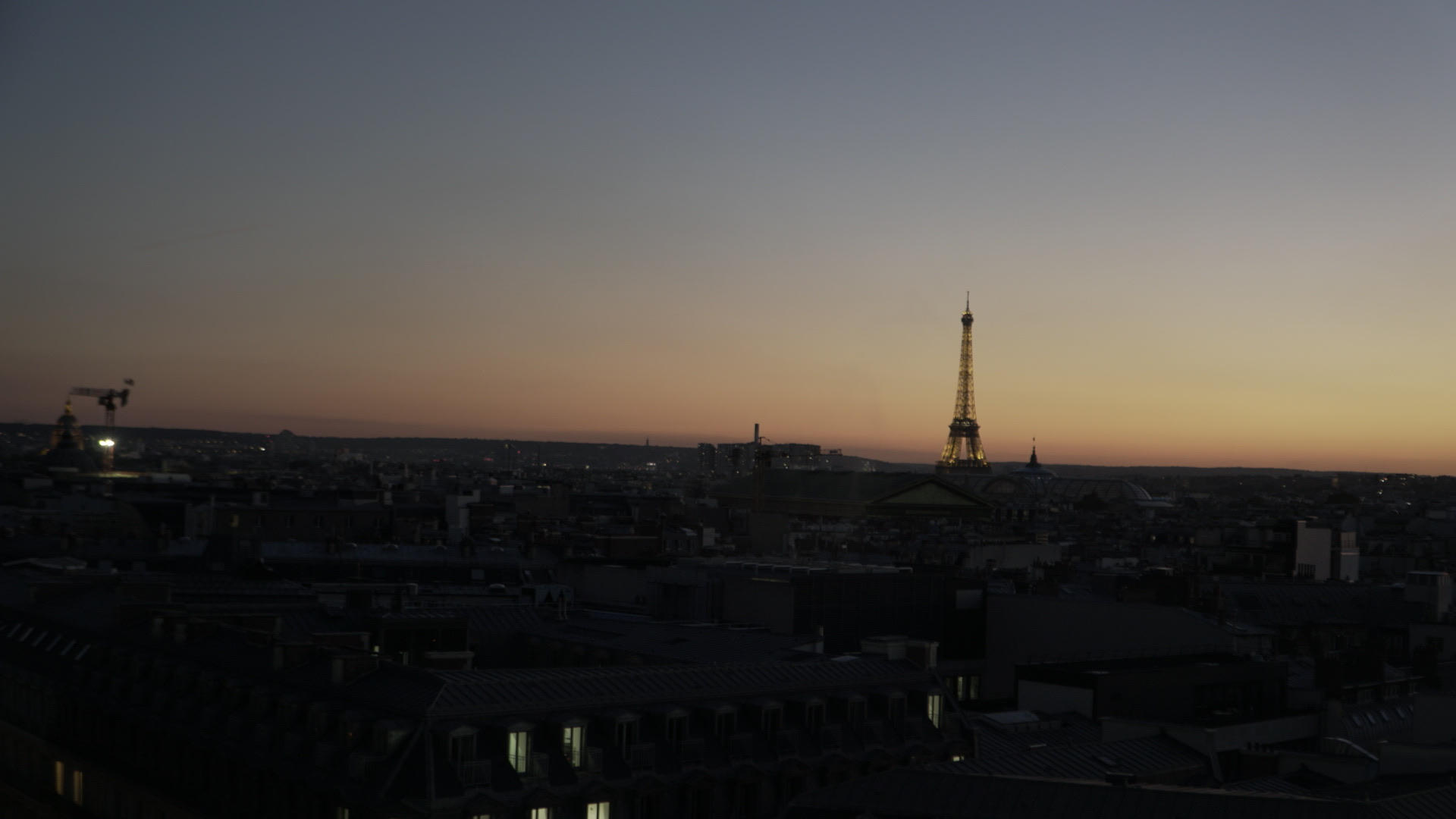 Toàn cảnh Paris khi hoàng hôn buông xuống, bầu trời xanh trong của mùa thu vào ban ngày được nhuộm màu hồng rất lãng mạn