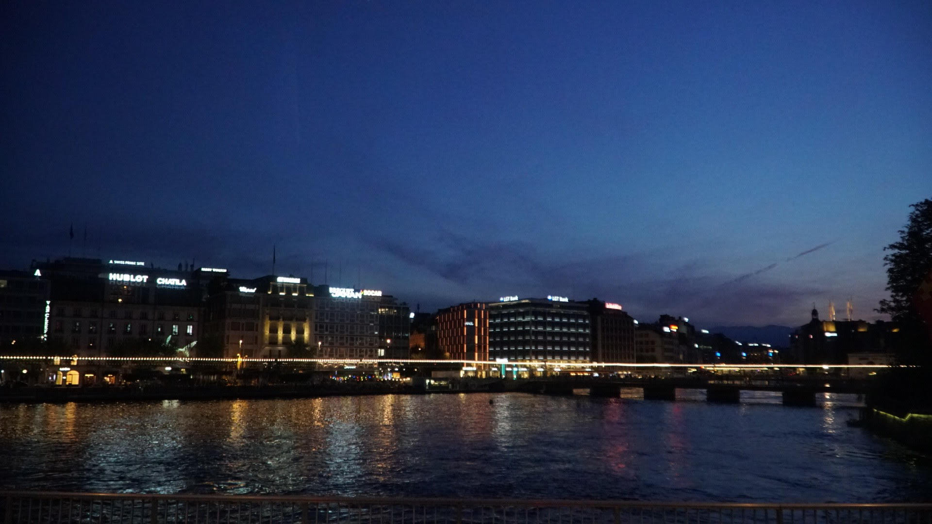 Hồ Geneve phản chiếu bóng đèn điện lung linh trong đêm