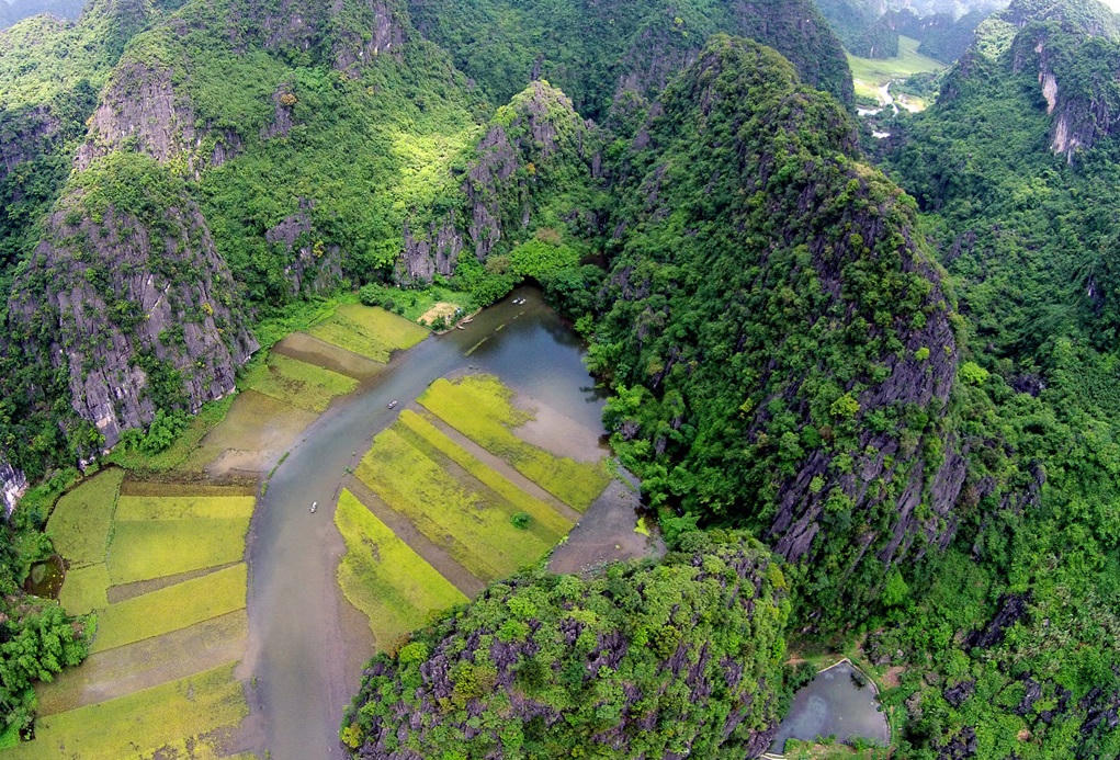 Mùa lúa chín ở Tam Cốc (Ninh Bình) thực sự đặc biệt vì có sự hòa quyện của núi, của sông và những cánh đồng óng vàng. Nơi đây cũng là một trong những địa điểm "sống ảo" nhất vùng đất cố đô.