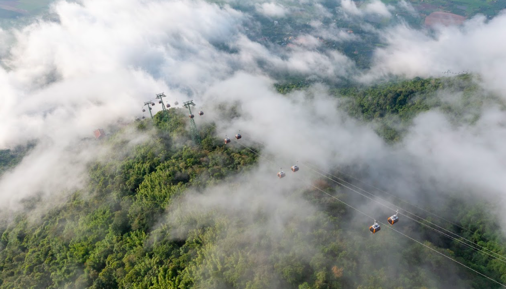 Cáp treo chỉ mất 8 phút để đưa khách lên đỉnh núi cao nhất Nam bộ. Ảnh: Sun World Ba Den Mountain. |