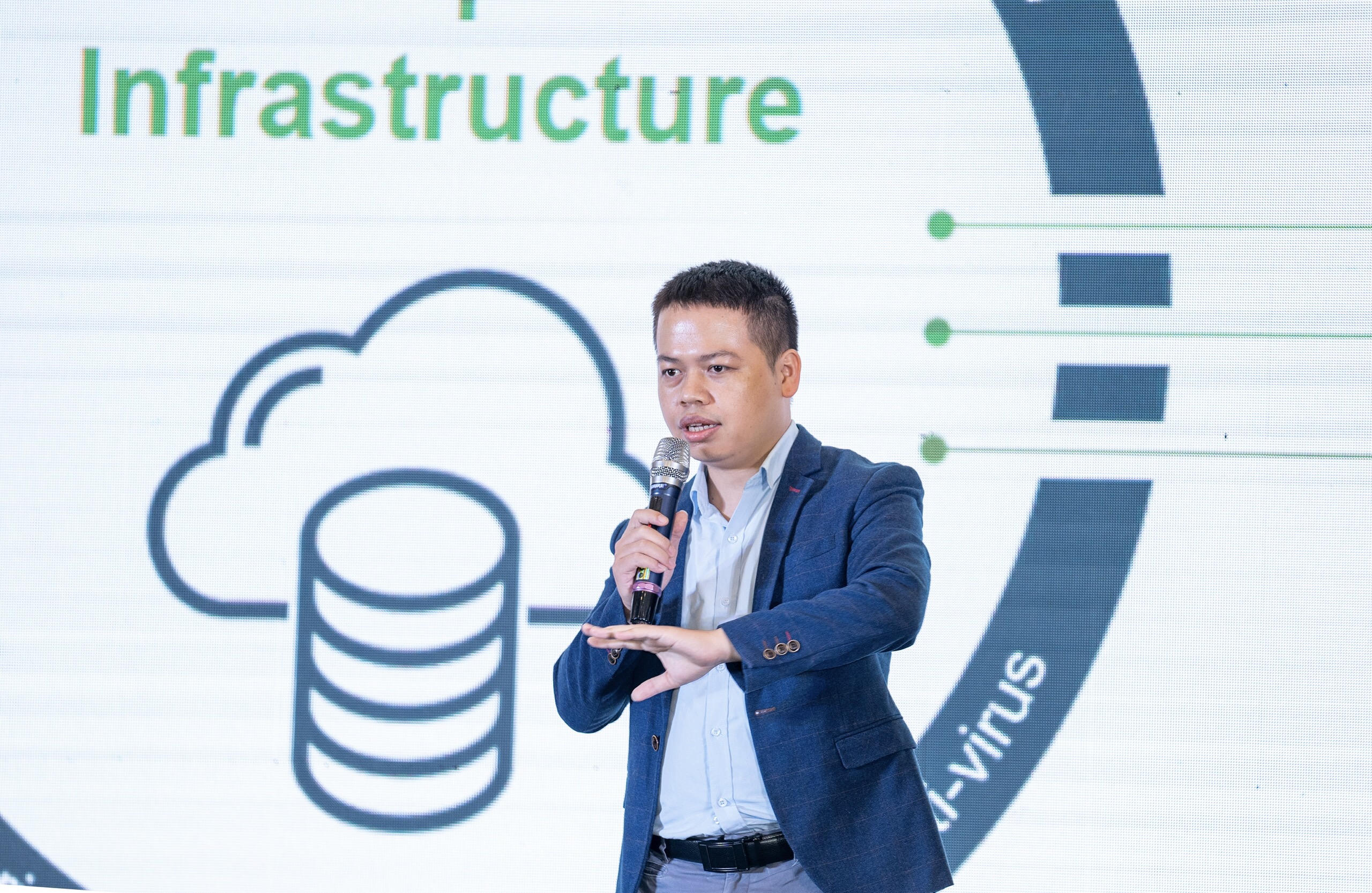 Chuyên gia về an toàn, bảo mật, ông Vũ Thành Công - Phó Giám đốc trung tâm công nghệ Nessar trình bày tham luận tại Hội thảo. |