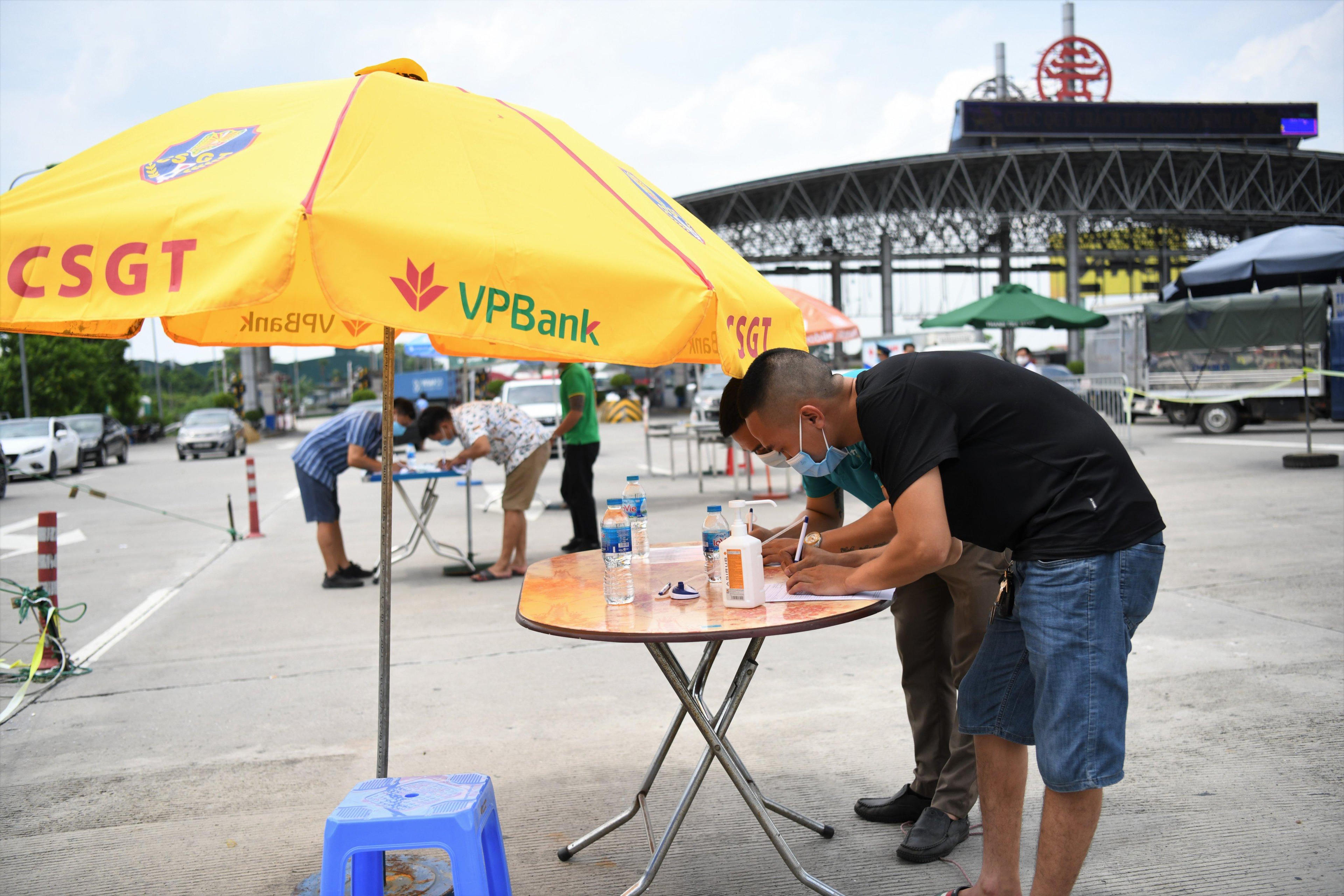 Tại chốt kiểm dịch Covid-19 trên cao tốc Pháp Vân - Cầu Giẽ, để kiểm soát các phương tiện vào thành phố Hà Nội, lực lượng chức năng đã bố trí lực lượng lập barie, căng dây tại các làn hướng vào thành phố và chỉ để một làn xe cho các phương tiện đủ điều kiện đi "luồng xanh" qua sau khi đã kiểm tra.