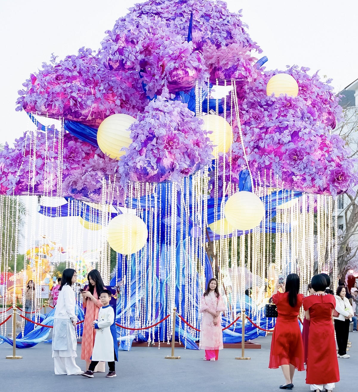 Dịp này, nhiều gia đình cũng không thể bỏ lỡ việc ghi lại những khoảnh khắc đầm ấm, sum vầy bên nhau. Riêng phái đẹp, chỉ cần diện áo dài hay cổ phục thướt tha, nền nã, đứng bên các cụm đèn lồng khổng lồ, các tiểu cảnh Tết xưa… là đã sở hữu bộ ảnh du Xuân, đón Tết rực rỡ.