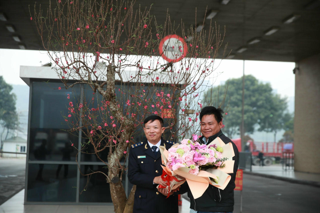 Cũng trong sáng mồng 1 Tết, tại tuyến cửa khẩu khác của địa phương là Cửa khẩu Quốc tế đường bộ Lào Cai bắc qua cầu Hồ Kiều, đại diện cơ quan chức năng cũng đã tiến hành tặng hoa cho hành khách Trung Quốc đầu tiên nhập cảnh qua cửa khẩu.