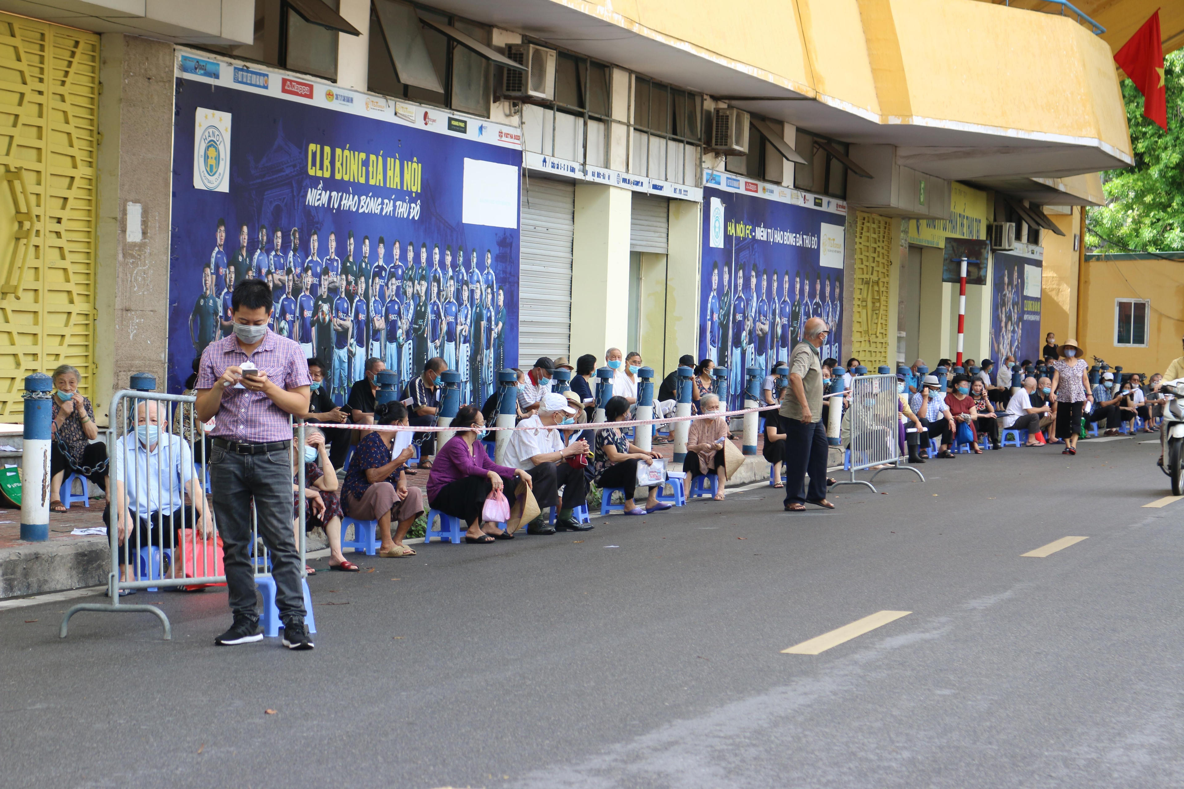Người dân xếp hàng chờ đến lượt tiêm tại điểm tiêm Nhà thi đấu Trịnh Hoài Đức. Ảnh: Ngọc Nga |
