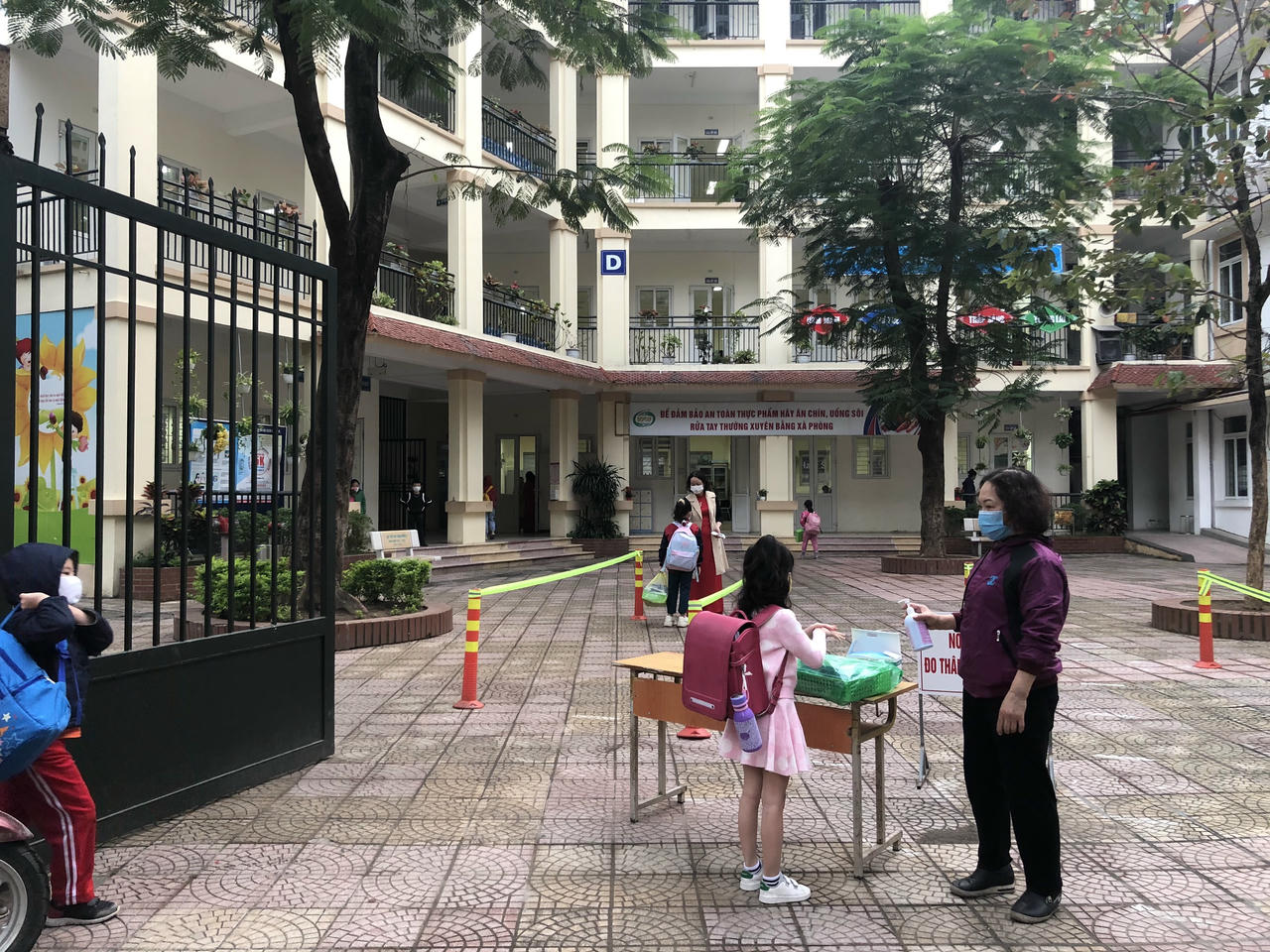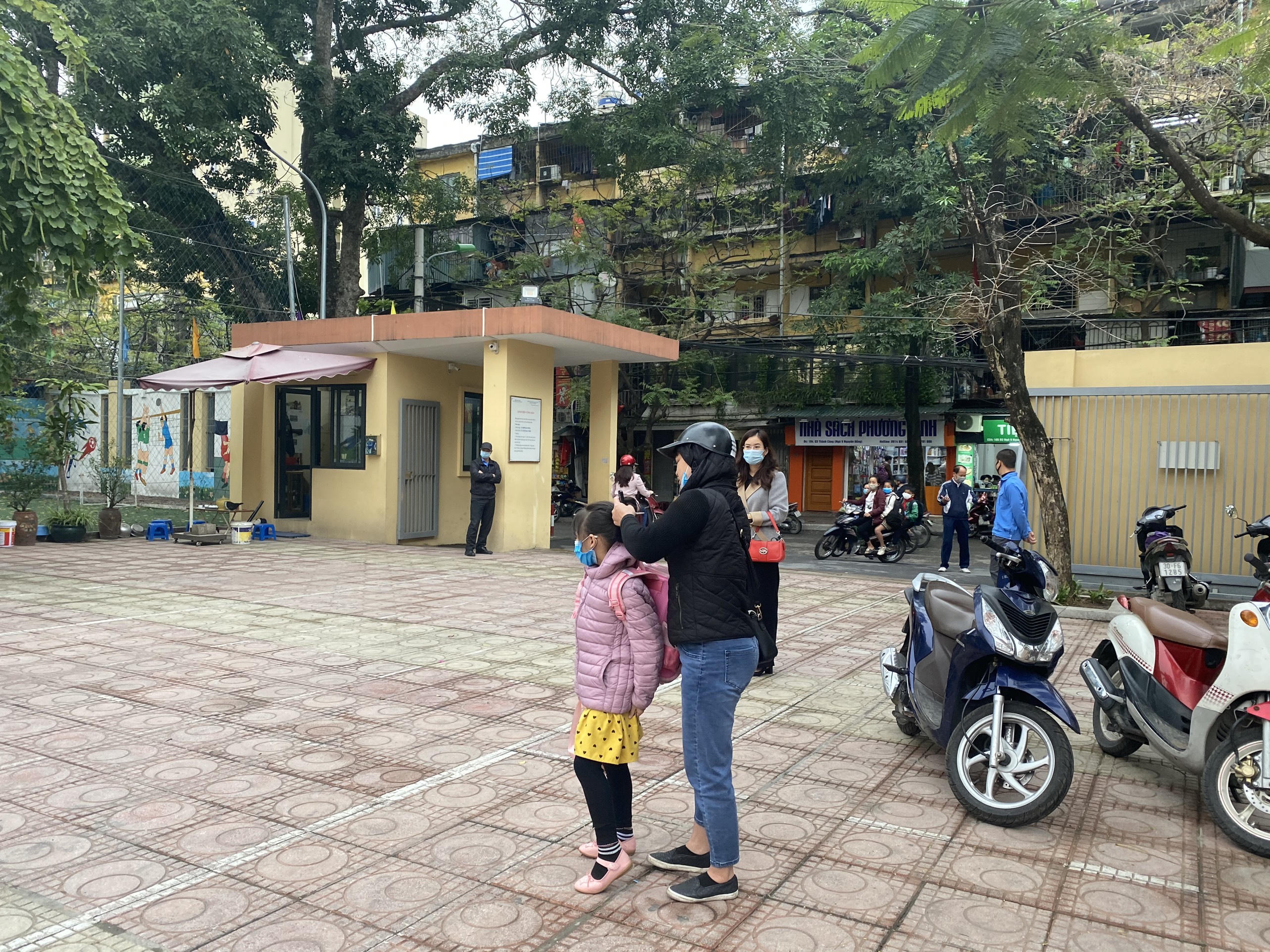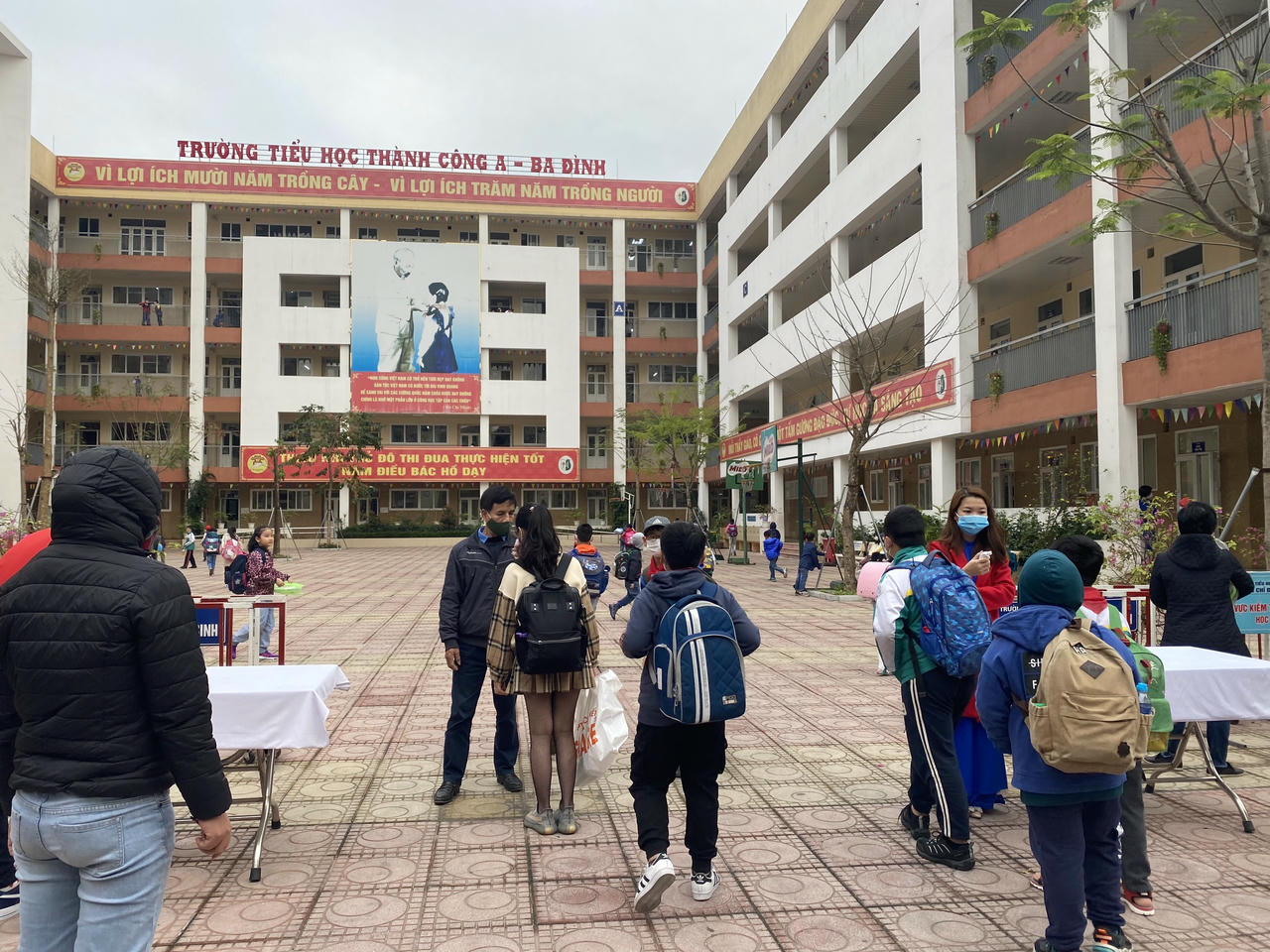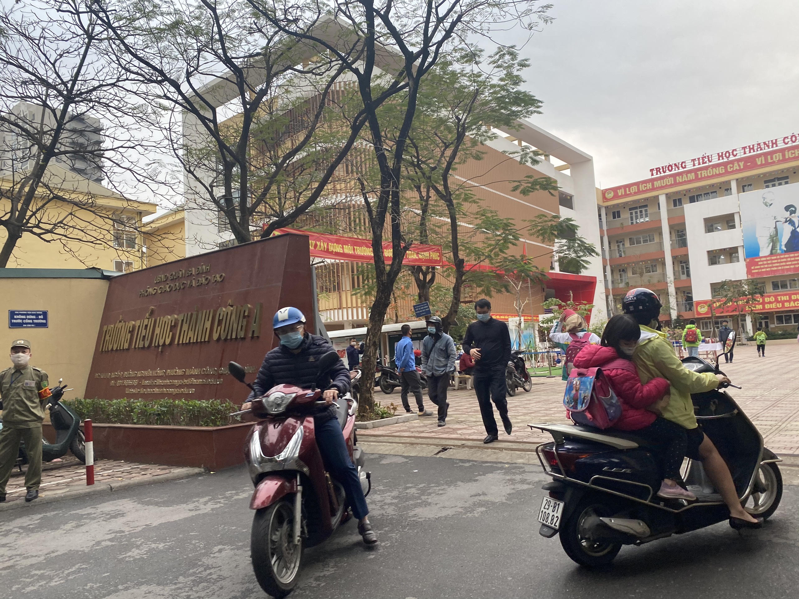 Nhiều học sinh Trường Tiểu học thành Công A đi học từ rất sớm.
