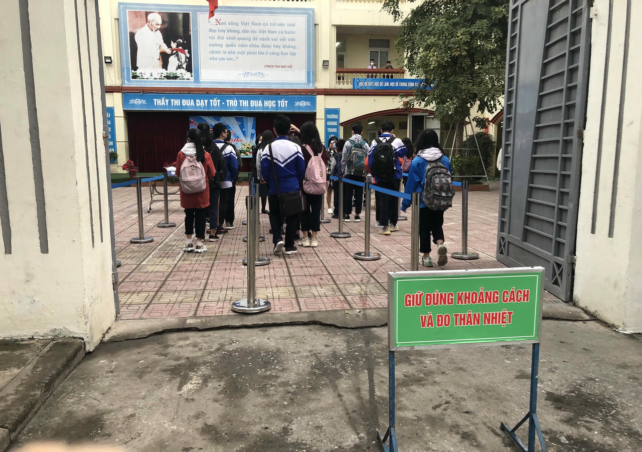 Lê Hồng Ngọc, học sinh trường THCS Phan Đình Giót cho biết: "Ở trong lớp cũng vẫn phải đeo khẩu trang, cảm giác bất tiện nhưng rất vui vì được đi học, được gặp bạn bè thầy cô".