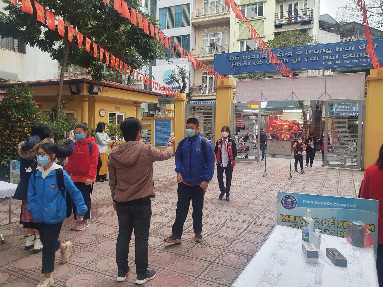 THCS Thăng Long chào đón các con học sinh trở lại trường.
