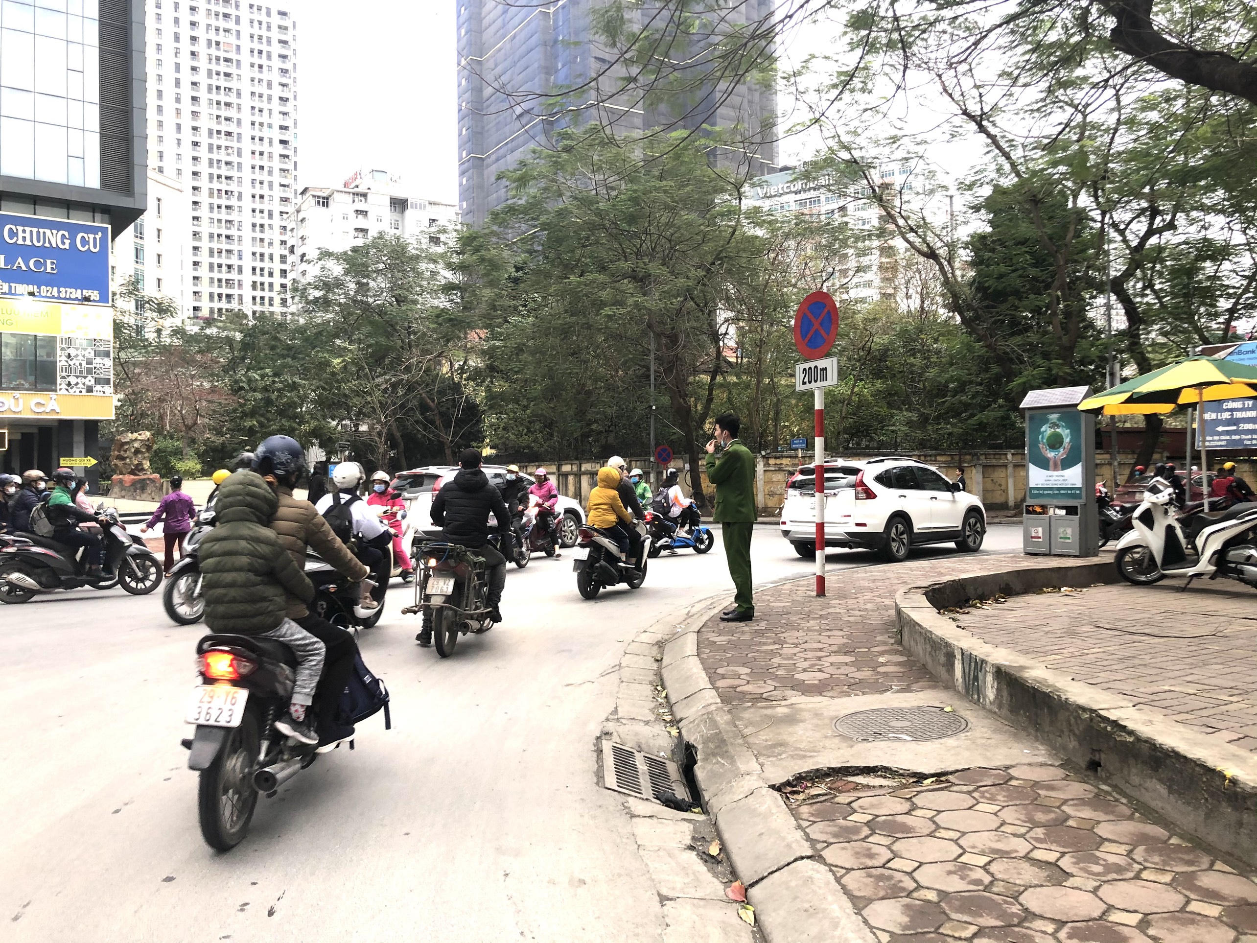 Lực lượng công an được huy động để giảm thiểu tình trạng tắc đường.
