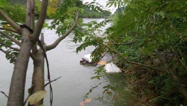 Sông Quây Sơn chảy từ phía Trung Quốc sang Việt Nam trở thành con đường vận chuyển thuốc lá nguyên liệu trái phép. (Ảnh: các bao thuốc lá nguyên liệu được thả trôi theo sông về Việt Nam). |